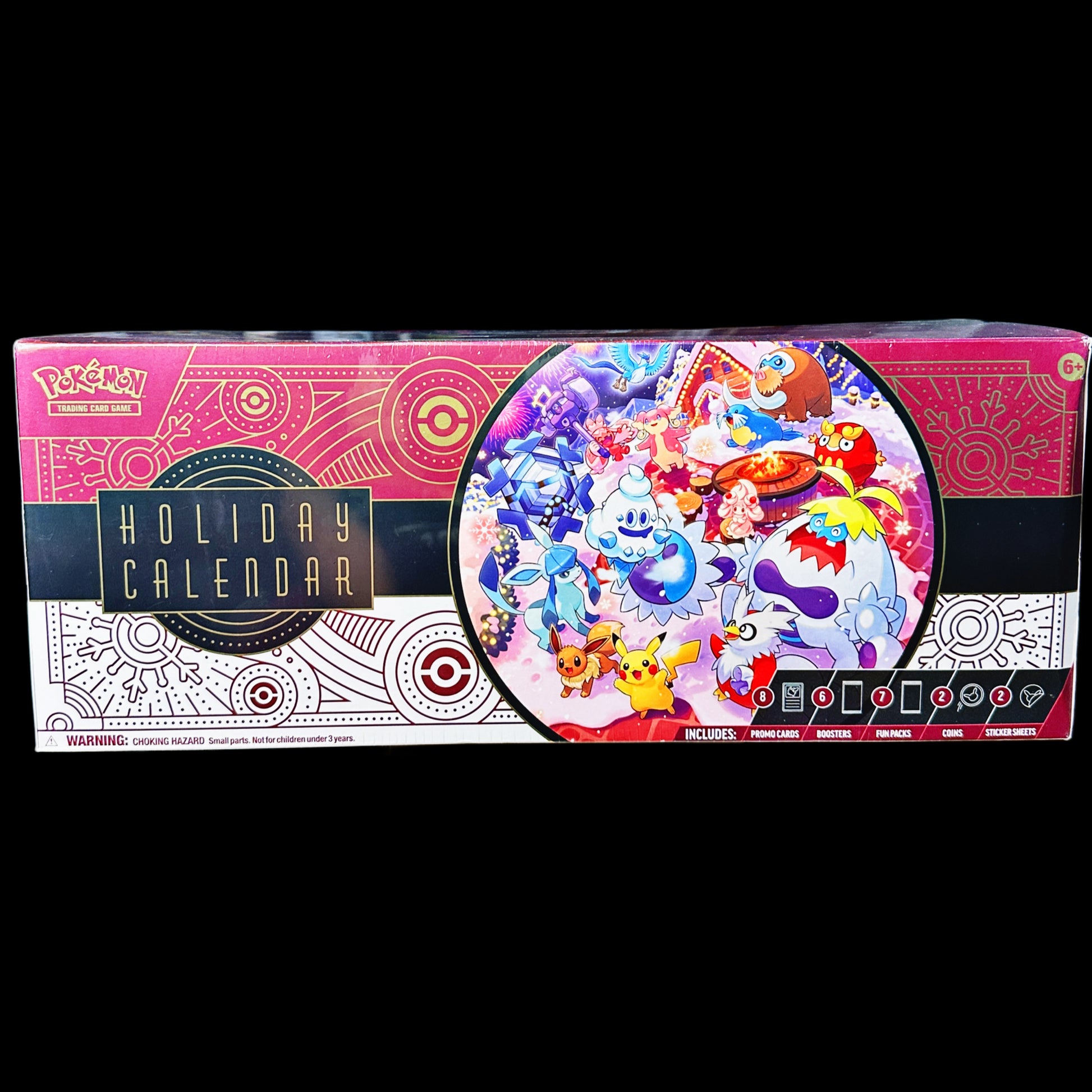 The Pokémon TCG: Holiday Calendar includes 25 surprises to discover: • 8 foil Pokémon TCG cards with a festive stamp • 6 Pokémon TCG booster packs • 7 Pokémon TCG 3-card fun packs • 2 Pokémon coins • 2 Pokémon sticker sheets • Plus, find a code card for Pokémon TCG Live!